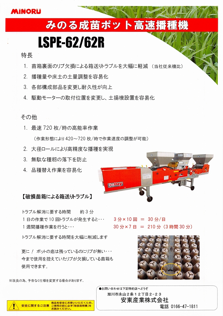 | 2026年3月31日 記載表示 中古みのるポット用播種機 播種同時施薬フレーム付 LSPE-62 (NO.4) |
